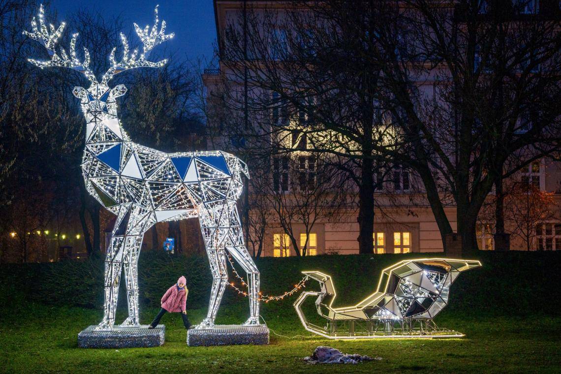 Ozdoby znajdziecie też na miejskich latarniach, które upiększają gliwickie dzielnice, na placu Piłsudskiego, gdzie jak co roku rozświetlono fontannę, na placu Grunwaldzkim, w parku Chopina, na skwerze Salgótarján przy Zamku Piastowskim, skwerze Dessau, na placu Krakowskim, skwerze Nacka... jest tego naprawdę mnóstwo! Dodatkowo, na skwerze Doncaster pojawiła się niespodzianka - olbrzymi renifer z saniami. Warto go odwiedzić osobiście podczas spaceru i zrobić sobie niezapomniane zdjęcia.