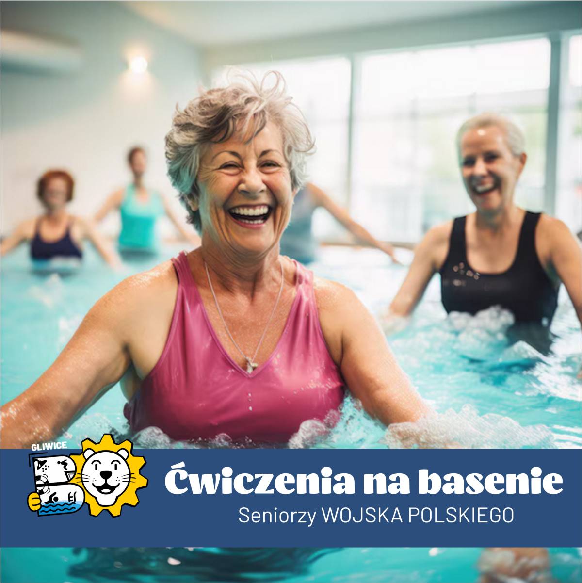 Zapraszamy Seniorów z dzielnicy Wojska Polskiego do udziału w ćwiczeniach w wodzie organizowanych na Kryta Pływalnia DELFIN przy ul. Warszawskiej 35 w Gliwicach.