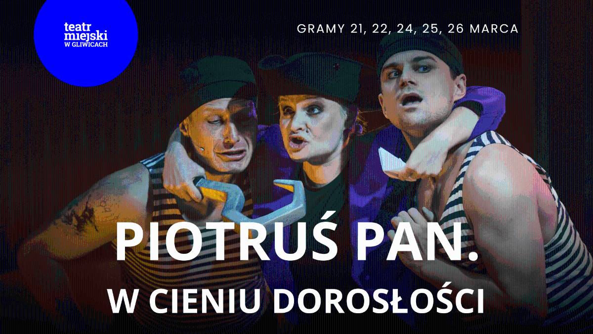Piotrusia Pana nie trzeba nikomu przedstawiać – dumny, przekorny chłopak, który nigdy nie dorośnie. Nie ma przeszłości ani przyszłości, jego życie to „wieczne teraz”, wieczna Nibylandia… Tylko rzadkie wizyty w dziecięcych pokojach i jakaś niewysłowiona, zawsze wyparta tęsknota łączą go z realnym światem. Tak przynajmniej było do tej pory. Dziś jednak Piotruś jest nie w humorze, nie może znaleźć swojego cienia. Zamiast niego spotkał Wendy – dziewczynę, która słyszała o Piotrusiu Panie, jak każdy z nas, ale nie była pewna, czy on naprawdę istnieje. Wspólny lot, wyprawa na lagunę, walka z piratami – niby nic zobowiązującego, kolejne przygody, czyli dzień jak co dzień w Nibylandii. A jednak wczoraj to wszystko wyglądało zupełnie inaczej… Kraina wiecznej młodości zaczyna tracić swój beztroski charakter. Przygody pękają w szwach, a zabawy rozpływają się w niemocy. Piotruś pierwszy raz czuje motyle w brzuchu i zaczyna wątpić w to, czy wróżki w ogóle istnieją. Jego dzieciństwo dobiega końca. Ale spokojnie – każdy sam decyduje, kiedy opuści swoją Nibylandię i jak często będzie do niej wracać. Spektakl operujący różnymi środkami wyrazu, łączący błyskotliwe dialogi z bogactwem teatru plastycznego, pomoże Widzom oswoić trudny proces dorastania.