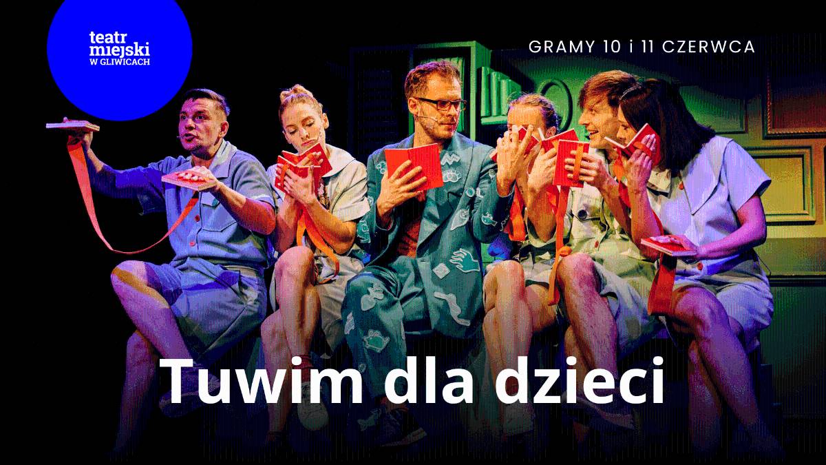 „Tuwim dla dzieci” w Teatrze Miejskim w Gliwicach   to kompilacja znanych, mniej znanych i zupełnie zapomnianych wierszy dla dzieci naszego znakomitego poety. To spektakl bardzo muzyczny, w którym widzowie będą – dosłownie! – wciągani w teatralną przygodę. Zabieramy was do czarodziejskiego gabinetu poety, w którym słowa, rymy i wiersze ubrane zostaną w bogatą plastykę teatru masek, lalek i cieni.